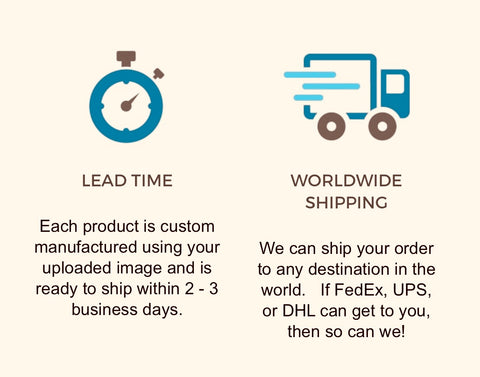 I am working with a Print on Demand company that produces all of these fun accessories and Fine Art Reproductions. After the order is placed, the products will be manufactured and shipped to your destination. The products can be shipped to anywhere in the world.